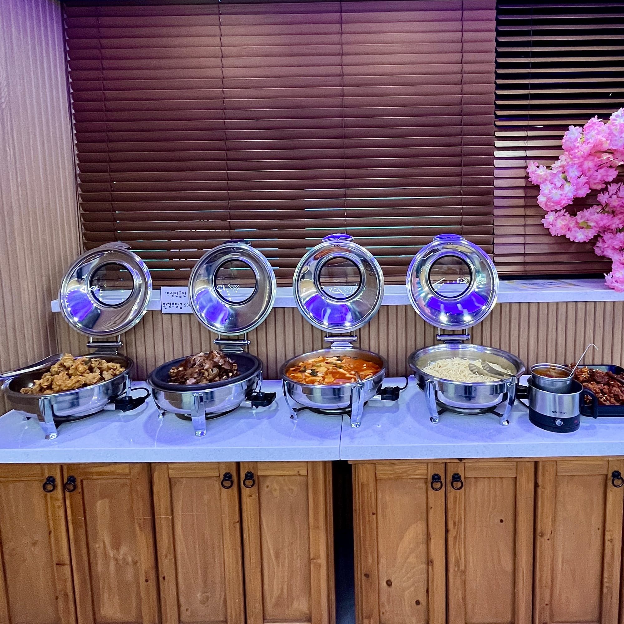 칼칼한 맛 담백한 맛으로 두 가지 육수를 동시에 즐길 수 있으며 5가지 소스로 다양하게 준비되어 있어 입맛에 맞게 즐길 수 있습니다. 후라이드치킨 양념치킨 미니족 스파게티 모두 무한으로 즐기세요!^^