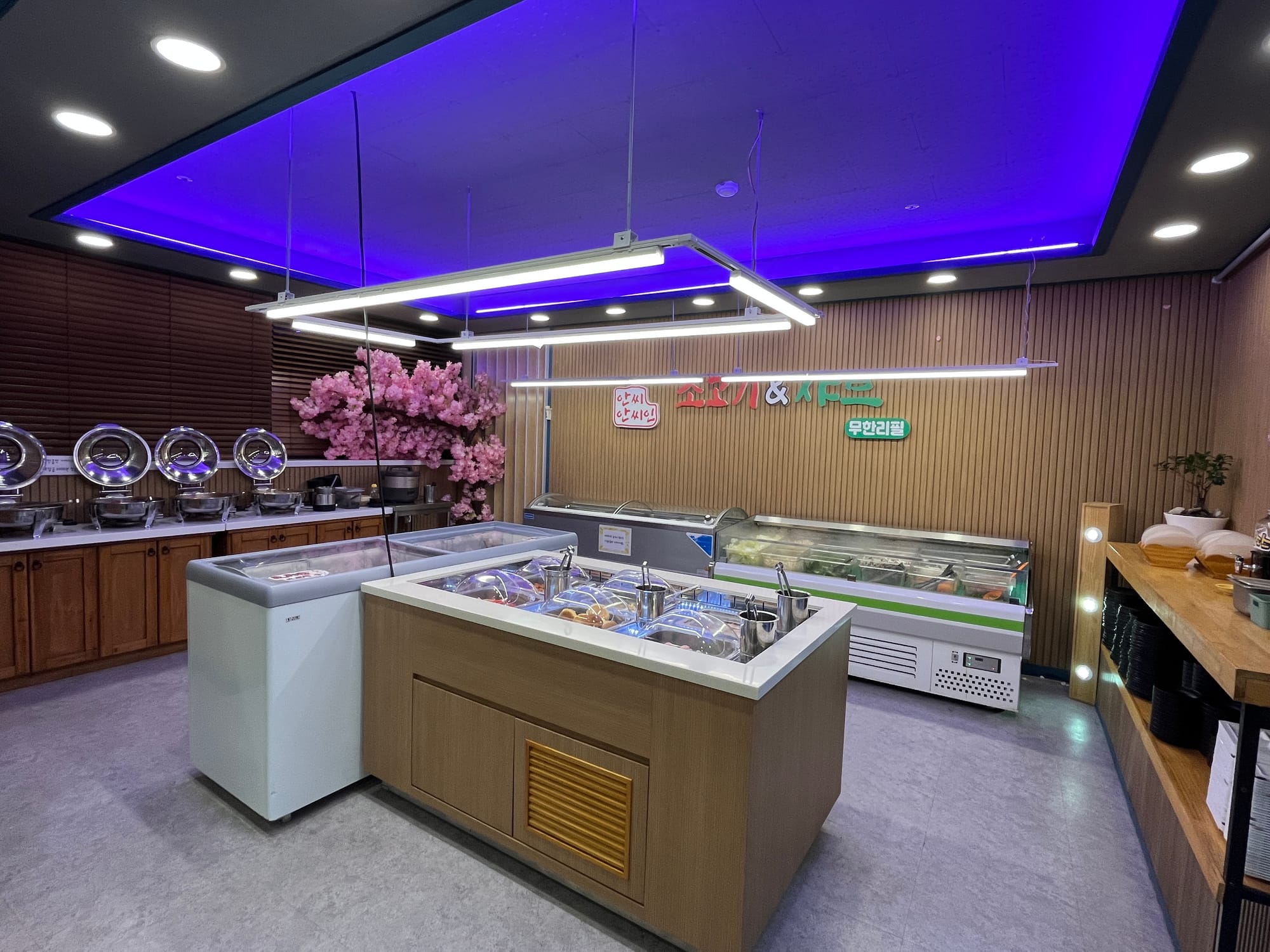 남녀노소 누구나 맘껏 즐길 수 있도록 품질 좋은 소고기+각종 신선한 야채+ 월남쌈 + 10가지 이상 사이드 메뉴+ 후식으로 떡과 과일 커피 ,칼국수면, 쌀국수, 수제비김치 만두, 고기만두, 피쉬볼, 두부 피쉬볼, 유부채, 어묵, 떡 등 모두 무한으로 즐길 수 있도록 마련되어 있습니다.